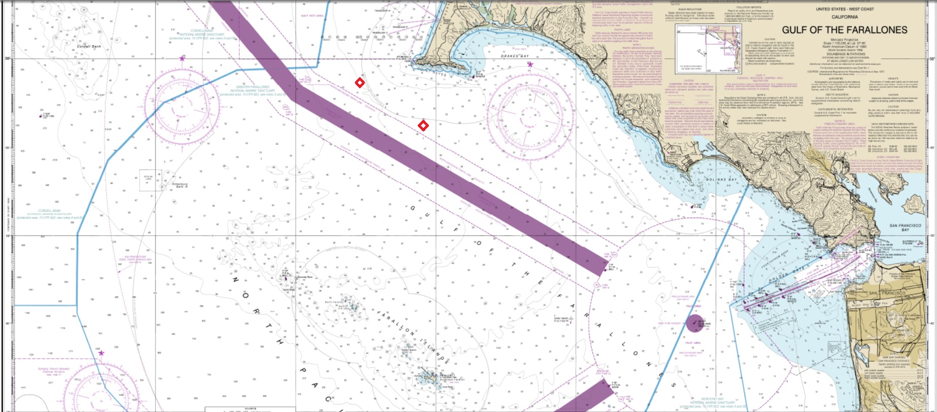 The Greater Farallones region is a biodiversity hotspot and one of the busiest maritime routes on the Pacific Coast. Each year, more than 6,000 large vessels – including container ships, tankers, and cargo containers – transit these waters, making it a persistent high-risk zone for marine life. WISSP’s first test deployment will take place here—bringing dynamic protection to a critical intersection of commerce and conservation as we benchmark the various aspects of the system.